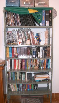 No momento são 323 discos, numerados e com índices guardados no PC para fácil acesso (usando-se o agrep¹) ^^ O problema é ter tempo para passar as mídias antigas para DVD, e fazer compilações de alguns temas que se repetem em vários discos - estas semanas juntei em 3 DVDs tudo o que eu tinha espalhado sobre Caverna do Dragão, agora estou recolhendo toda minha "arte original" e minhas fotos digitais para compilações futuras.